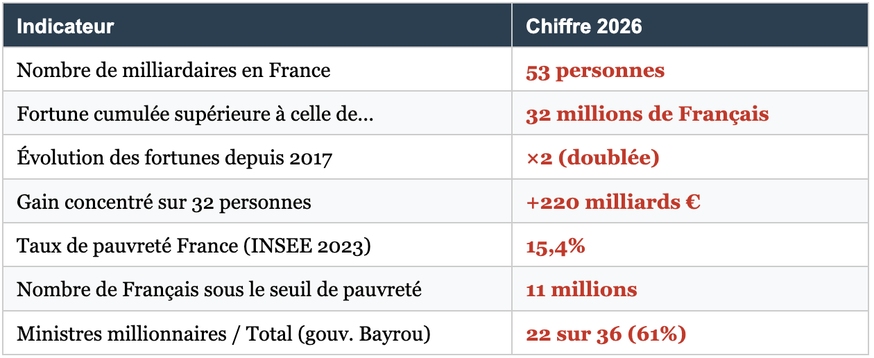 • Focus France Oxfam 2026 : Données spécifiques sur les 53 milliardaires français