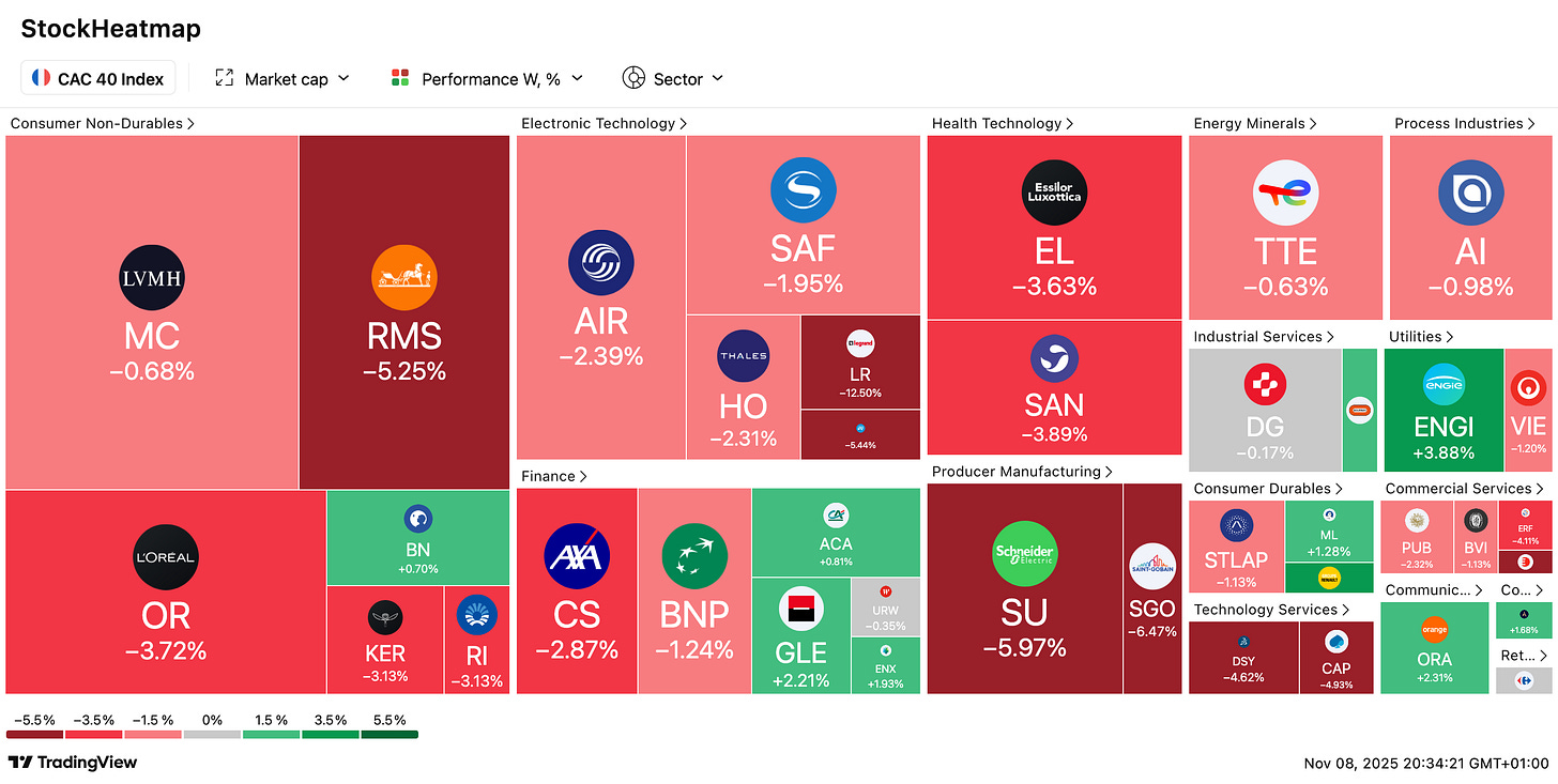 ✈️ Air France-KLM plombe en Bourse malgré un été record des touristes canadiens : Les réservations en provenance du Canada ont bondi de +30 %, poussant Air France à ajouter des vols vers Paris. Mais les grèves des contrôleurs aériens, la hausse des taxes à Schiphol (+41 %) et des coûts de sécurité accrus ont fait chuter le bénéfice net à 768 M€ (-56 M€). Résultat : le titre a dévissé jusqu’à -14 % jeudi. Le PDG Ben Smith prévient : « Si nous ne faisons pas de profits, nous ne pouvons pas acheter de nouveaux avions. » En parallèle, Emirates affiche un semestre record avec 3,1 Md$ de bénéfice avant impôts (+17 %).