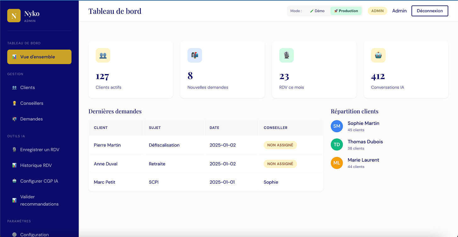 Tu te demandes peut-ĂȘtre pourquoi jâai investi autant de temps et dâĂ©nergie dans ce projet. AprĂšs tout, je suis Conseiller en Gestion de Patrimoine, mais jâai une formation dâingĂ©nieur informatique de base. Mon mĂ©tier, câest dâaccompagner mes clients dans leurs choix financiers, pas de coder des applications web. Mais câest justement lĂ que rĂ©side lâintĂ©rĂȘt de cette expĂ©rience : je voulais prouver quâun professionnel dâun secteur traditionnel pouvait sâemparer de ces outils pour transformer sa pratique, sans devenir un expert technique.