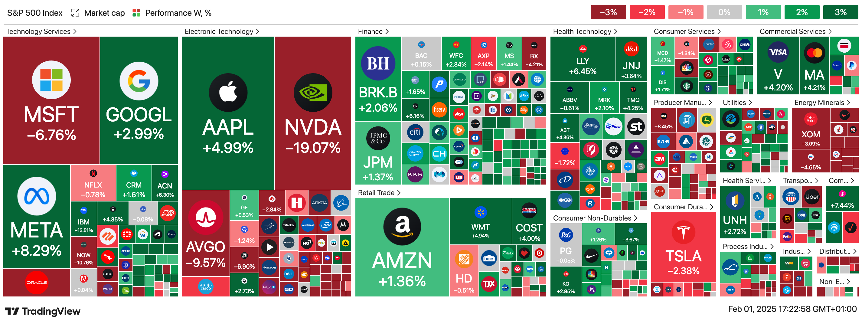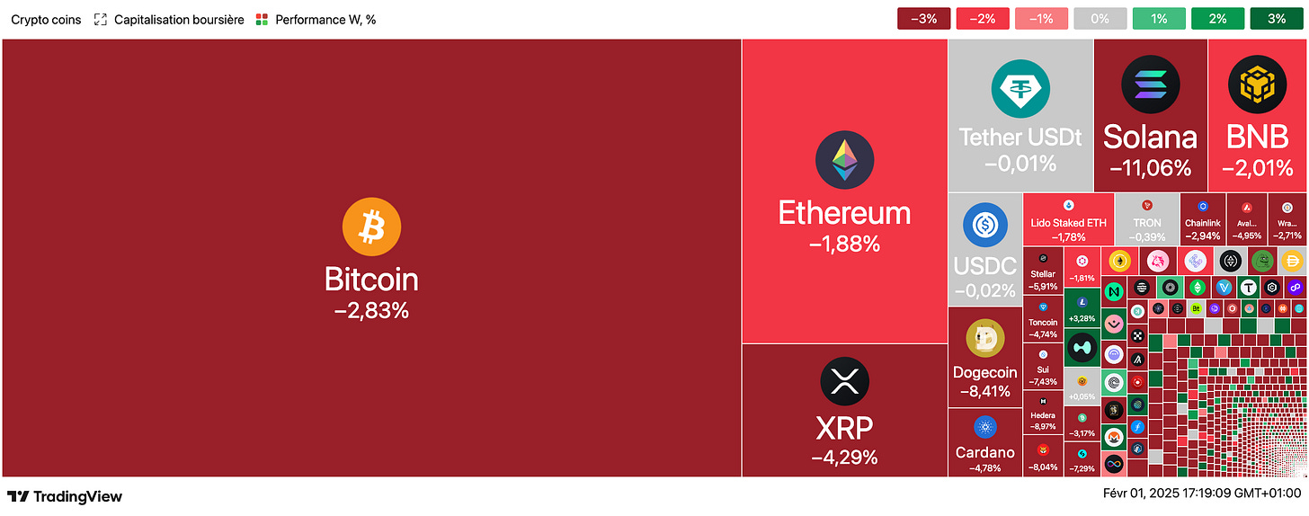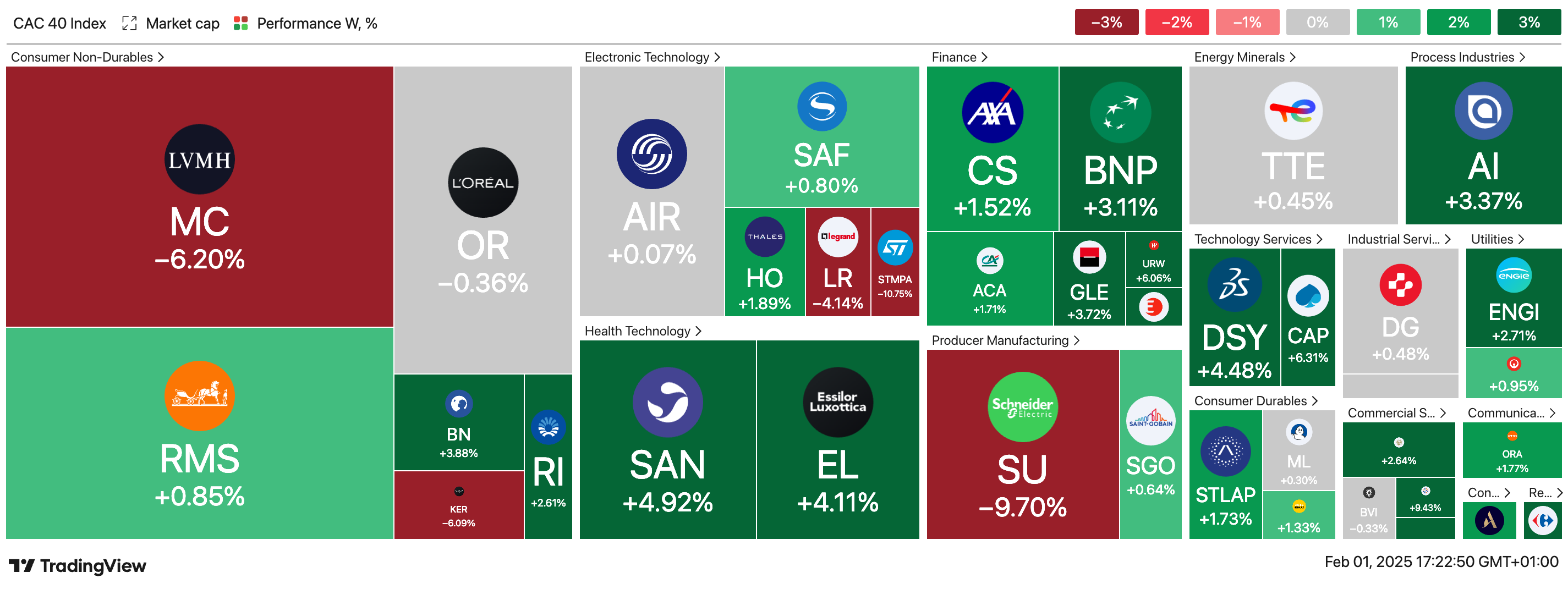📈 Janvier record en Bourse malgré la guerre commerciale 🌍 : Les grands indices boursiers ont terminé janvier sur une forte hausse, avec un Cac 40 à +7,72%, signant l’un de ses meilleurs débuts d’année. Wall Street suit avec un Dow Jones à +5,5% et un S&P 500 à +4%, malgré l’impact de DeepSeek sur la tech. Mais l’ombre de la guerre commerciale de Trump, qui impose 25% de droits de douane sur le Canada et le Mexique dès le 1er février, inquiète les marchés. Pendant ce temps, la Fed reste prudente sur ses taux, et côté entreprises, Valneva bondit de +10,89%, tandis que Carrefour chute après une dégradation de HSBC. 📉