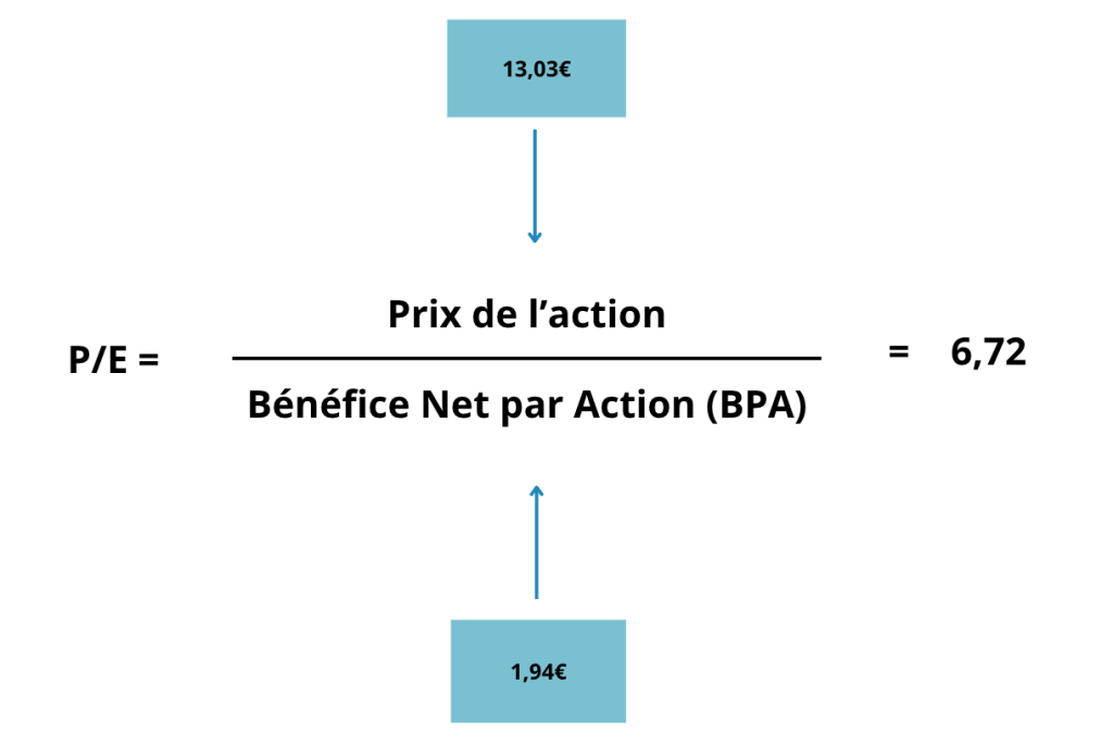 Le ratio P/E (Price to Earnings ou Prix/Bénéfice) est l’un des indicateurs les plus populaires en bourse. Il te permet de savoir si une entreprise est sous-évaluée par rapport à ses bénéfices annuels. Plus il est bas, plus l’action est potentiellement sous-évaluée.