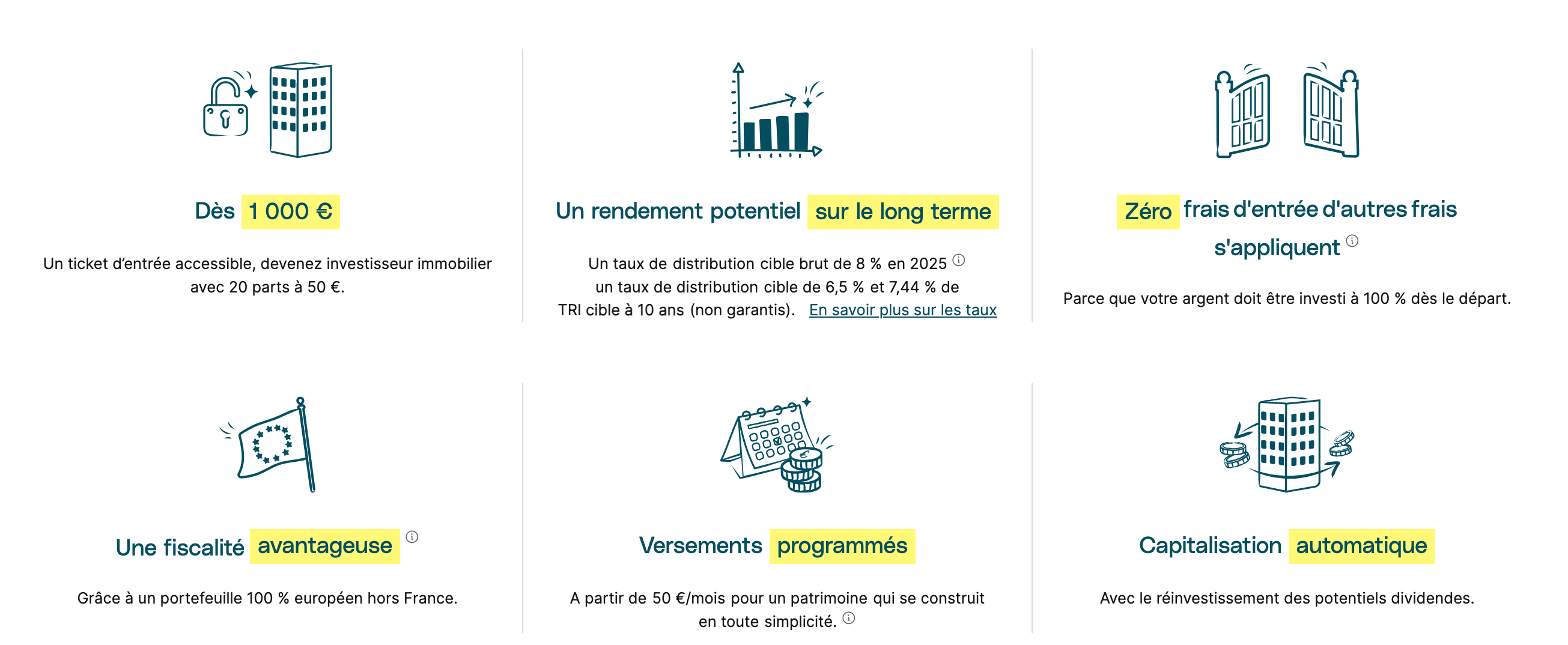 đ§Ÿ Un ticket dâentrĂ©e dĂšs 1 000 âŹ, soit 20 parts Ă 50 ⏠seulement. Lâinvestissement est simple, accessible et progressif, avec la possibilitĂ© de mettre en place des versements programmĂ©s dĂšs 50 âŹ/mois.